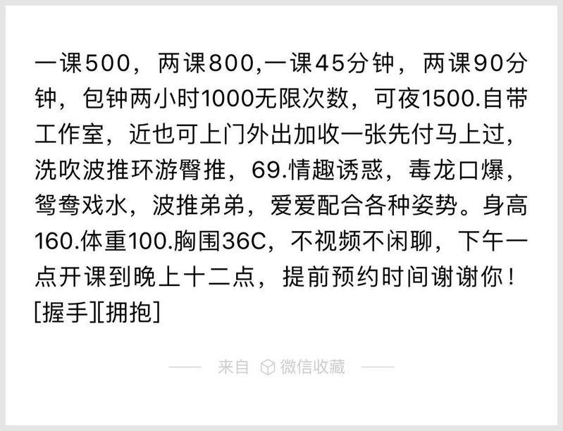 【寻欢时间】:2019年06月09日 【寻欢地点】:广东佛山 【信息来源】:亲身体验 【服务项目】:鸳鸯戏水,洗吹波推环游臀推,胸推,69式,毒龙口爆,情趣诱惑,爱爱配合各种姿势。 【妹妹数量】: 【环境设备】:自带公寓工作室 【营业时间】:约到就可以上 【价格一览】:500一课45分钟,800两课90分钟,包钟两小时1000不限次,1500过夜 【安全评估】:评分,满分100。刷卡上楼安全度高 【服务星级】:★★★★★(最高5星)应适当评价质量 【重点推荐】:身材很好前凸后翘 成熟有韵味,服务很好,配合叫声,不催人 【联系方式】:[unfree]18578385687[/unfree] 【寻欢细节】:下班吃完饭无聊 就上了微信看看平时加的那些妹子 最后找到了这个妹子 一看朋友圈就上火了 联系妹子 约了晚上凌晨时间 住的是小区公寓刷卡上楼,妹子成熟有韵味,身材凹凸有致,看到就忍不住了,洗澡完澡就上服务,口供一流,不久就卸下阵了,休息一下就带上雨衣继续上场,总之细节不多说,大家去体会体会,服务是真的不错....... 【附带照片】: